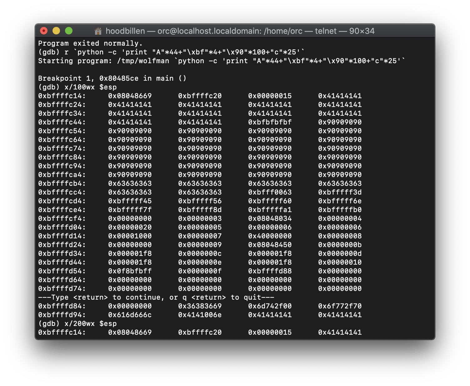 보면 이번에도 0xbffffcb4너머로는 안받는것 같다.